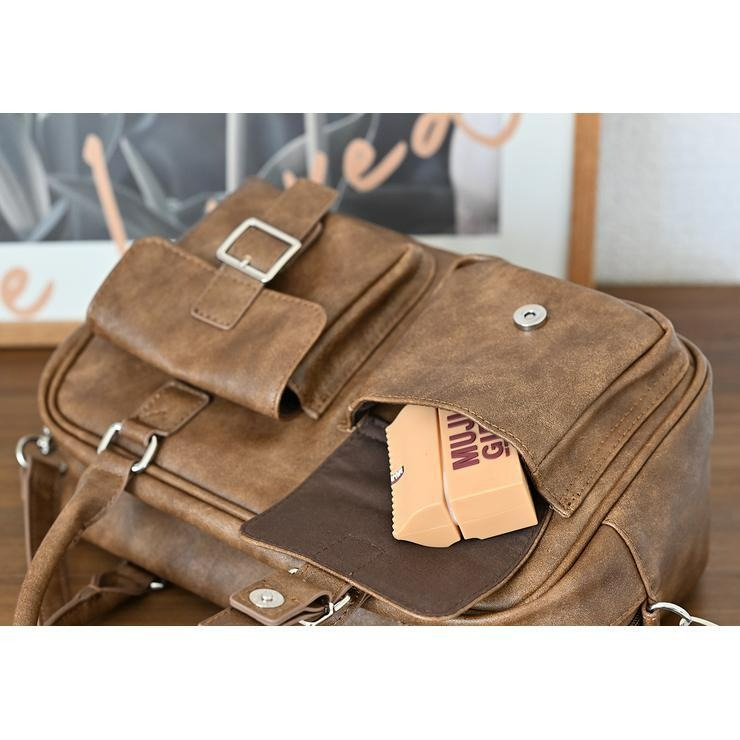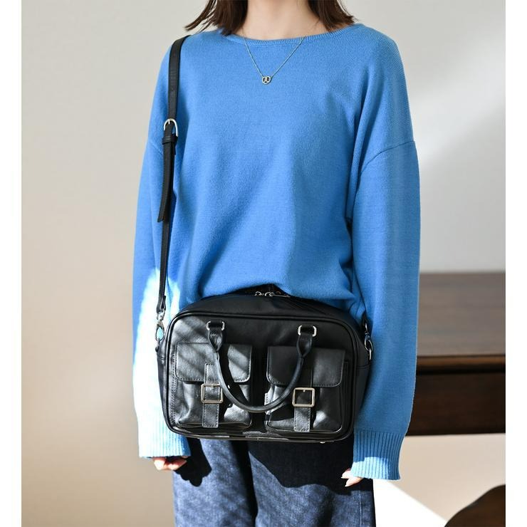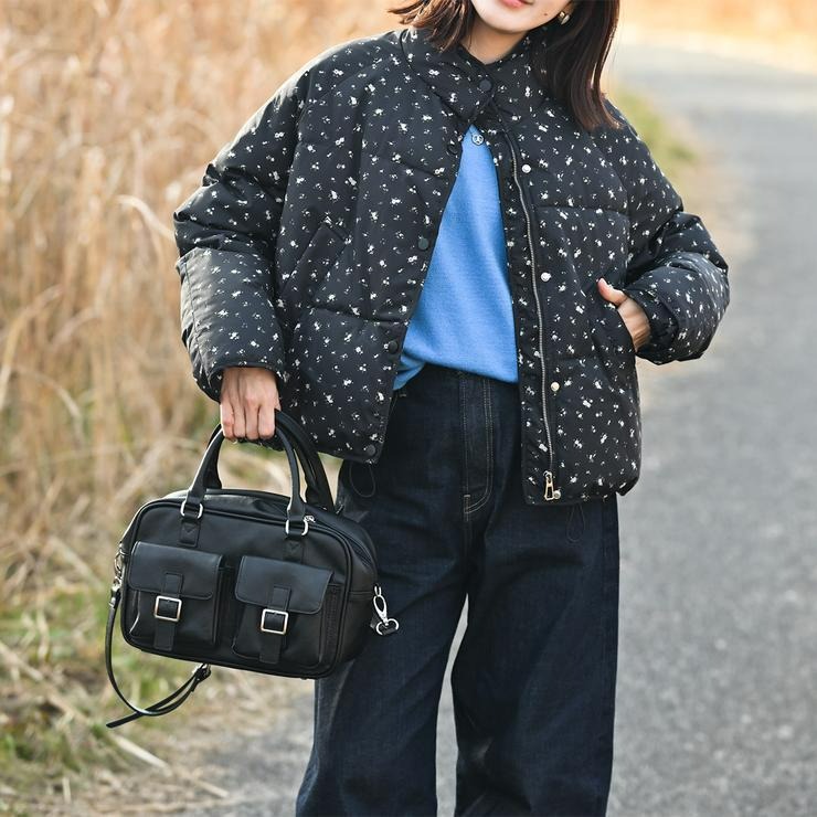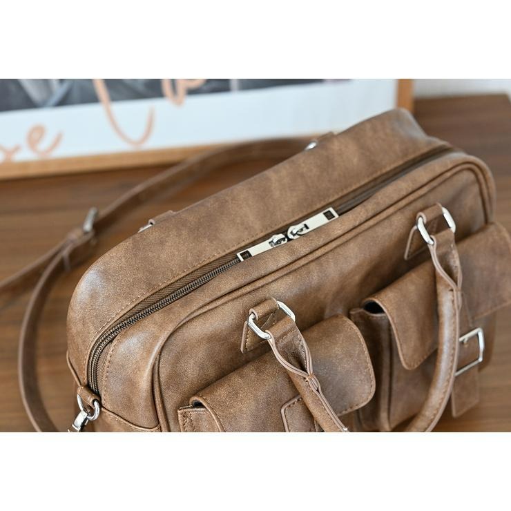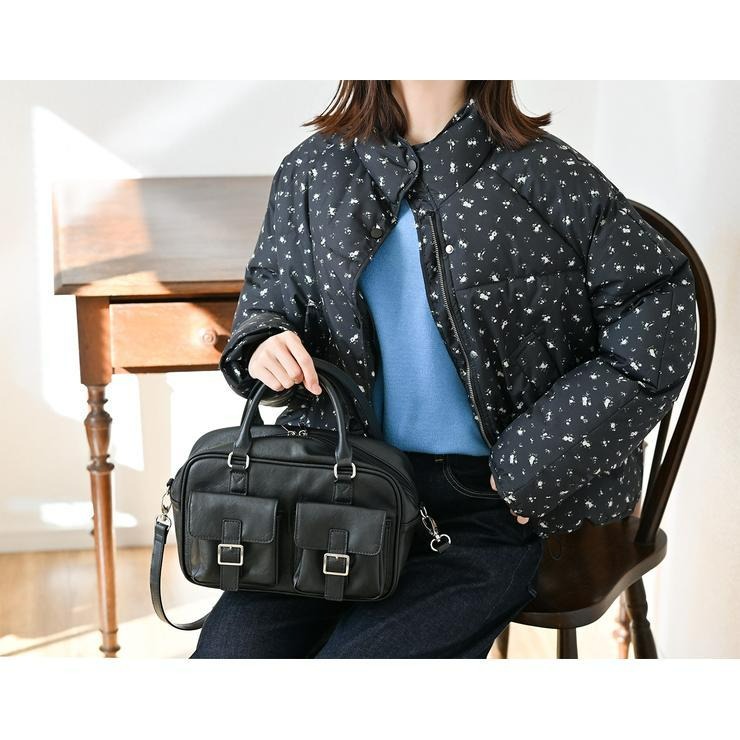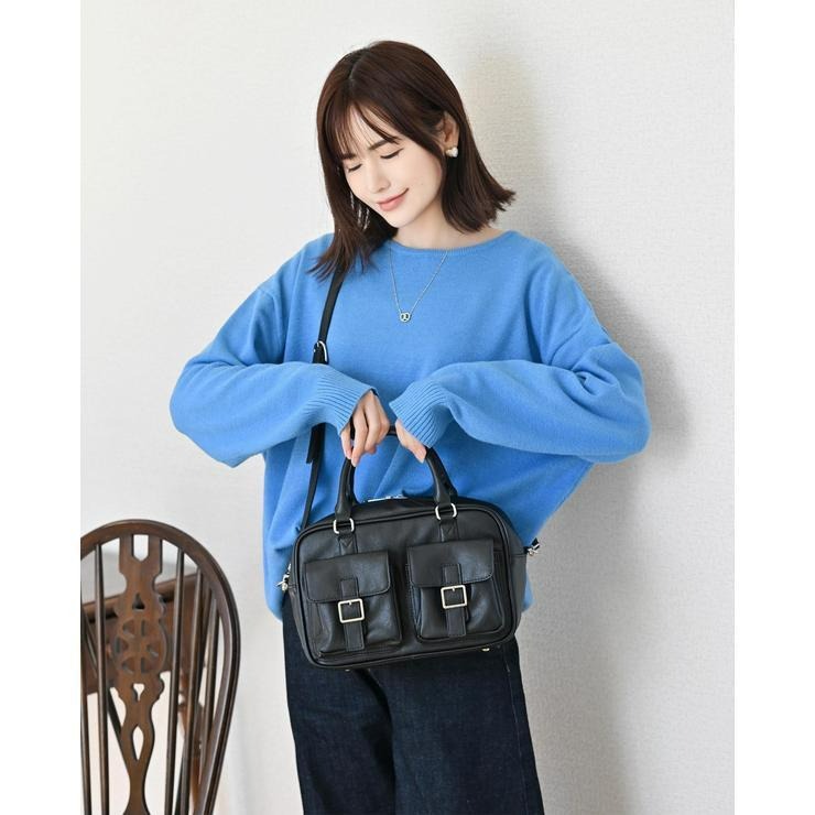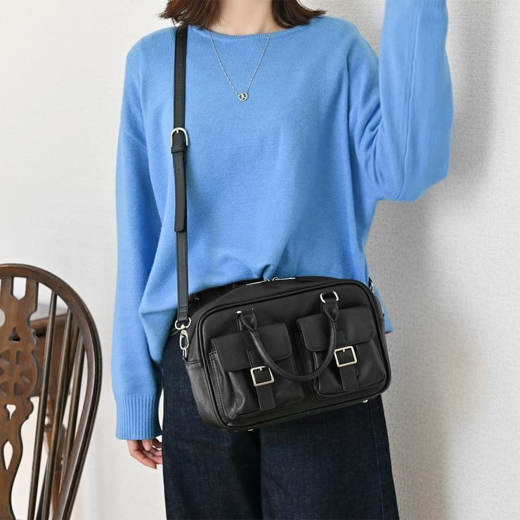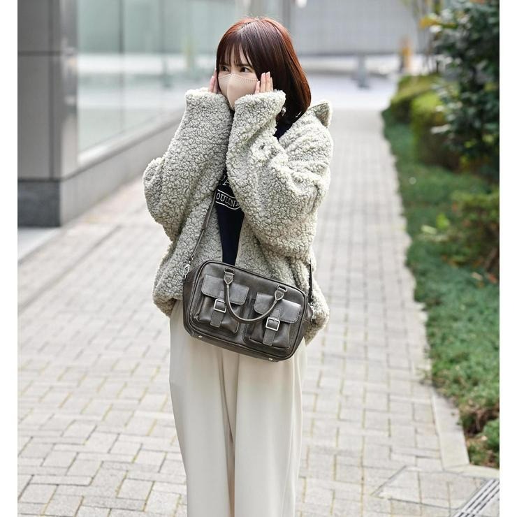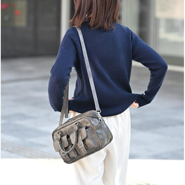 アンティーク調の素材にダブルポケットと横長のフォルムが可愛いボストンバッグ!