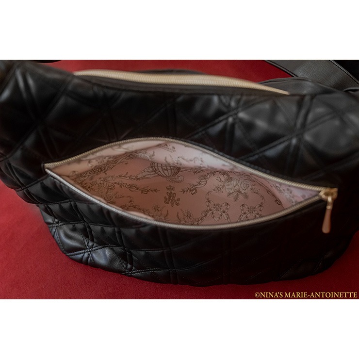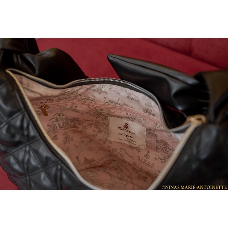 おしゃれ度がアップするキルティングのショルダーバッグは、NINA’Sのブランドロゴが目を惹き、たっぷりと荷物を入れることができる実用性のある商品です。幅広いコーディネートにも合わせやすく、内側にはオープンポケットとファスナーポケットが付いていて小物などの収納に便利です。またNINA’Sオリジナル柄の生地も使用しています。
