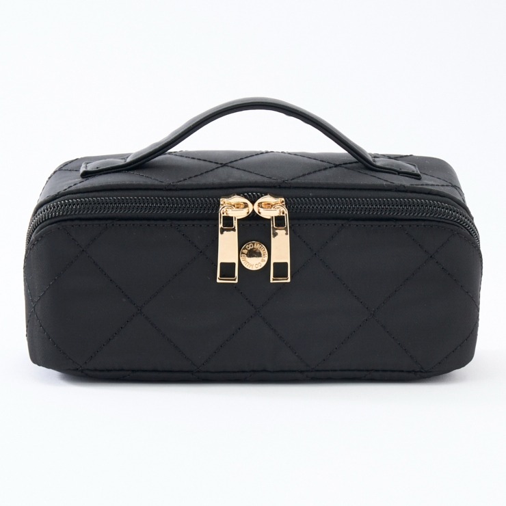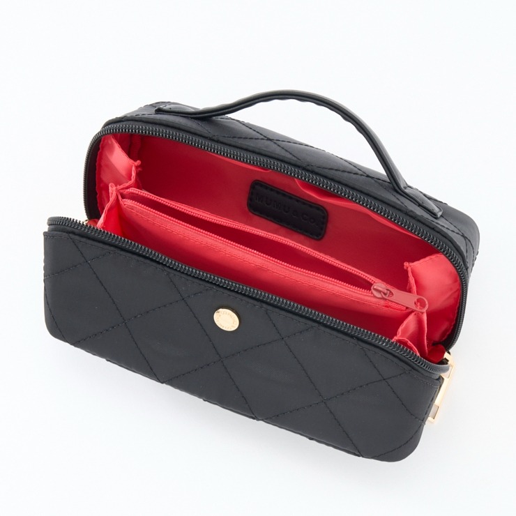 キルトポーチはがばっと開けられる仕様で、中はファスナー付きポケットが1つとオープンポケットが3つ付いています。