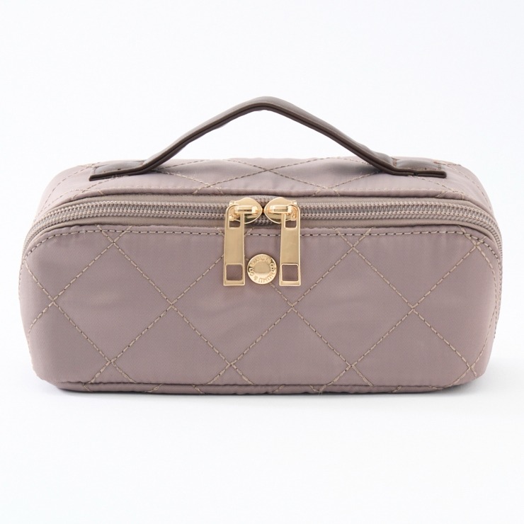 キルトポーチはがばっと開けられる仕様で、中はファスナー付きポケットが1つとオープンポケットが3つ付いています。