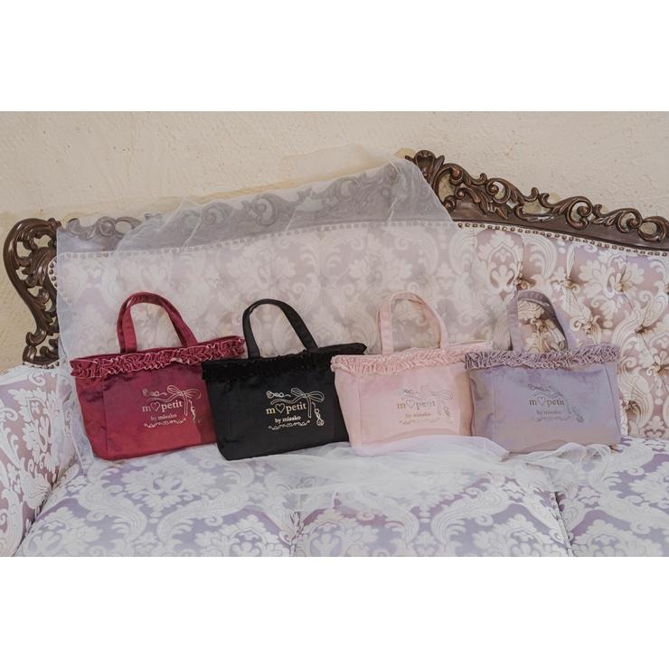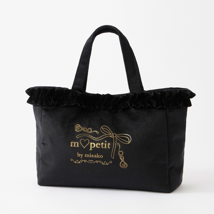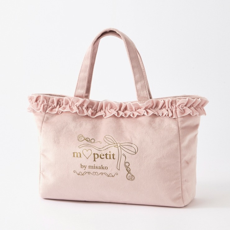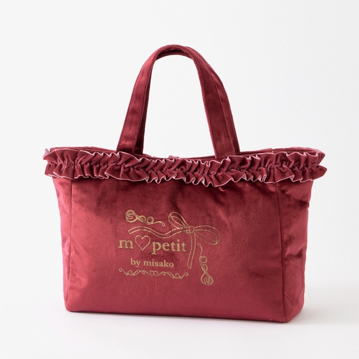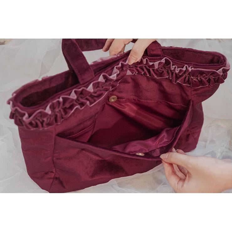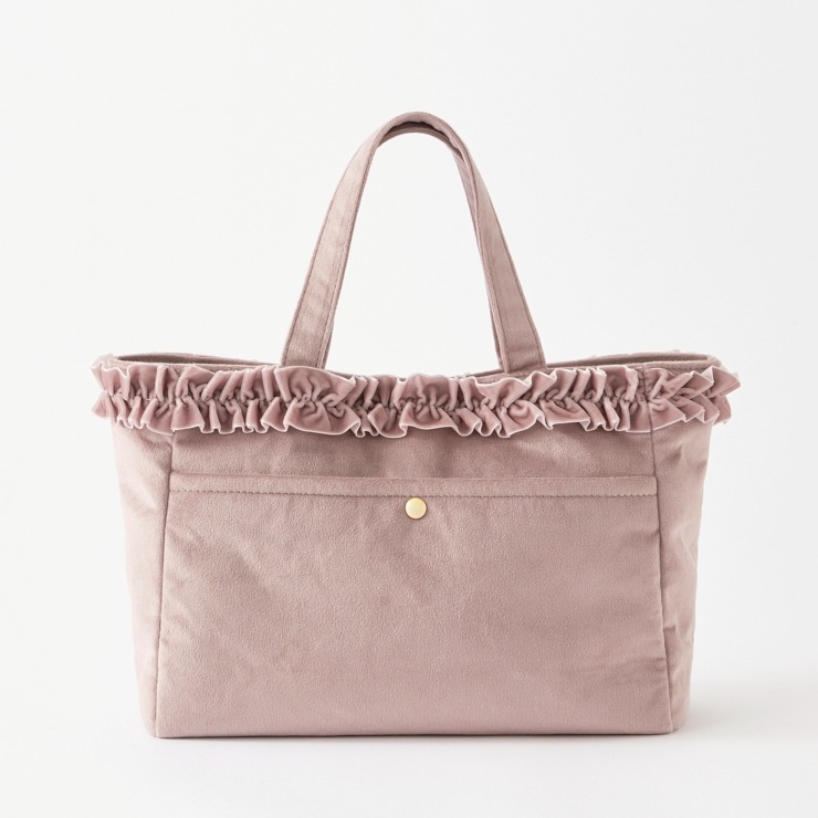 ベロア素材にフリルが上品で高見えする、ランチトートバッグです。