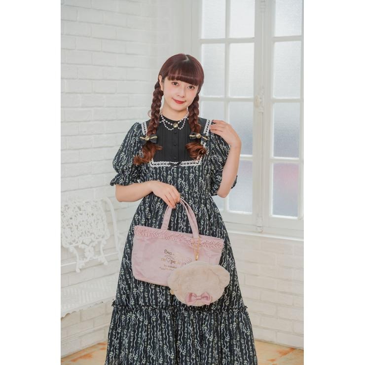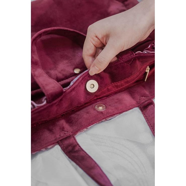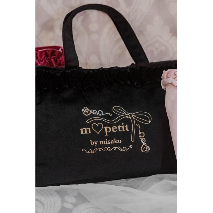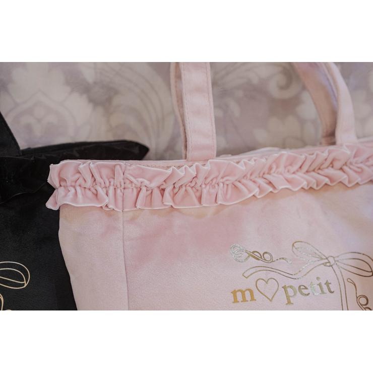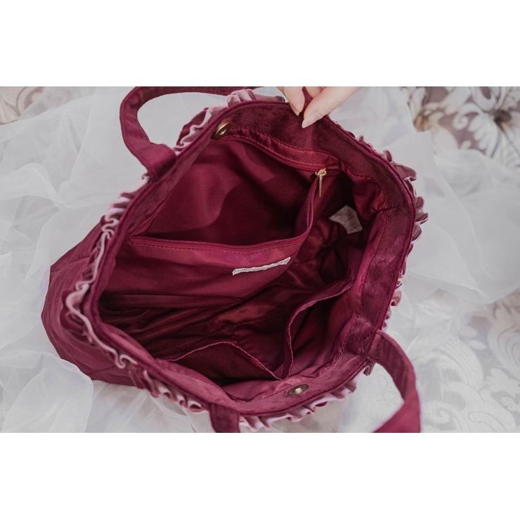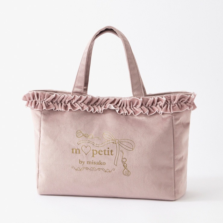 ベロア素材にフリルが上品で高見えする、ランチトートバッグです。
