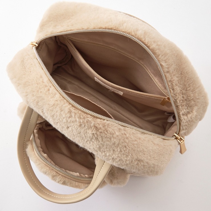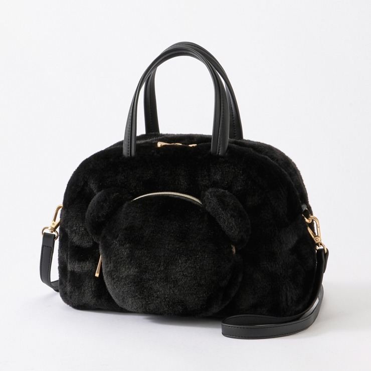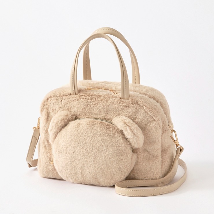 前面のファスナーポケットがくまさんモチーフになっていてとってもかわいい2Wayバッグです。
