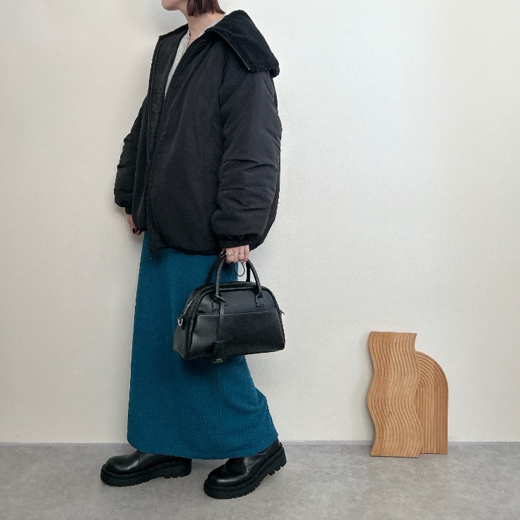 微起毛素材や合成皮革の質感が大人っぽさを演出。
