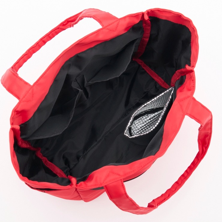 バッグ内側にはペットボトルなどを入れる保冷ポケットが付いており、使い勝手バツグンです。