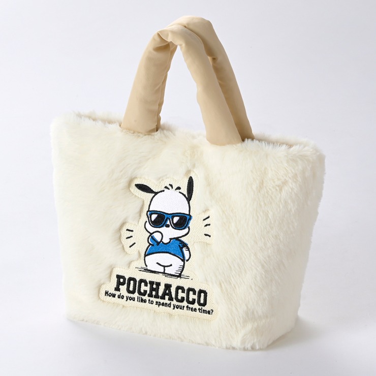 ポチャッコの刺繍が施された起毛素材の手提げ♪