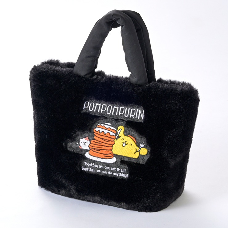 ポムポムプリンの刺繍が施された起毛素材の手提げ♪