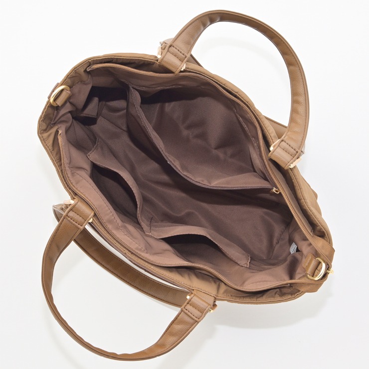 マチもありたっぷり荷物を入れて持ち運ぶことが出来て、内側にはペットボトルを入れられるループポケットやその他複数のポケットが付いているので、小物などの収納に便利です。