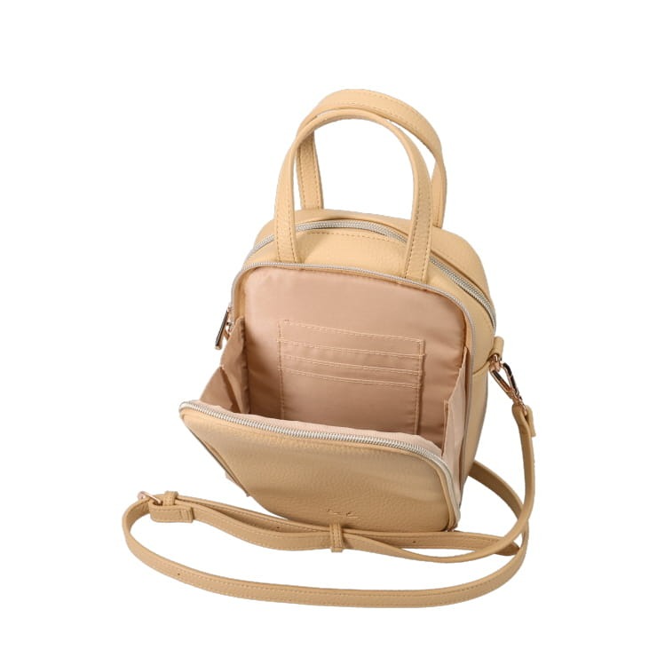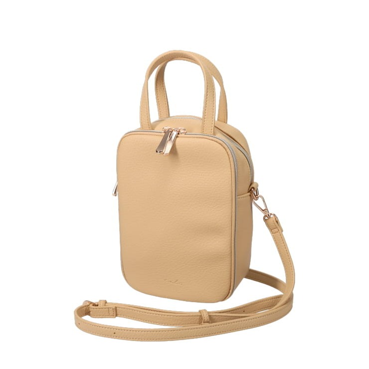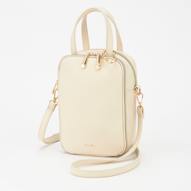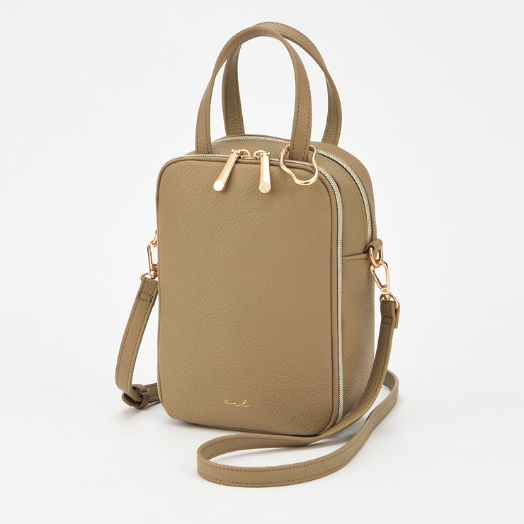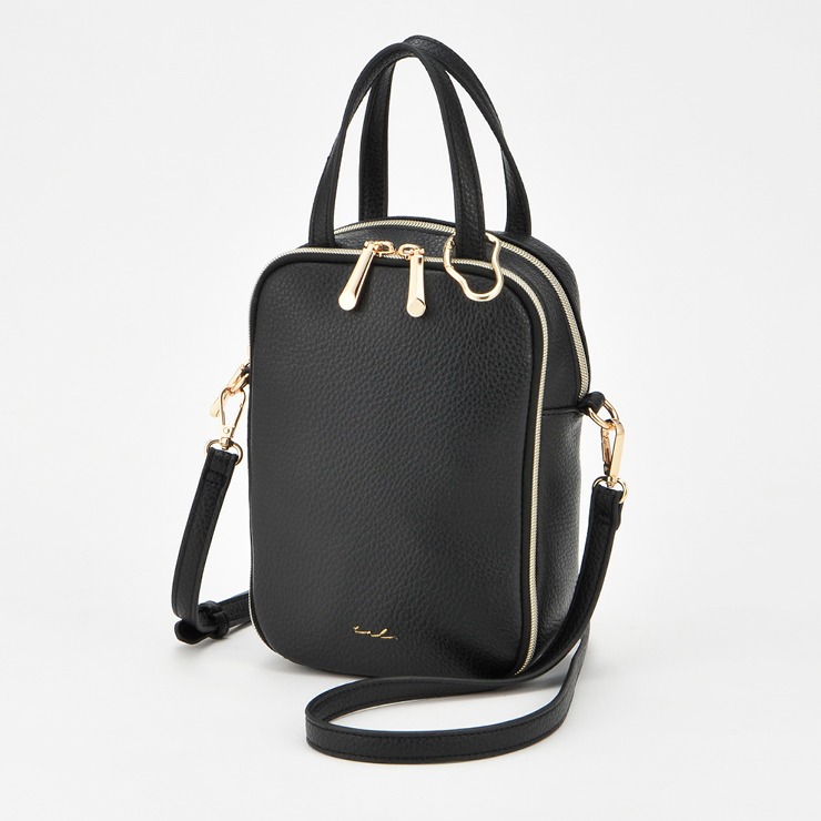 シンプルな縦長ショルダーに持ち手と取り外し可能なショルダーが付いているので