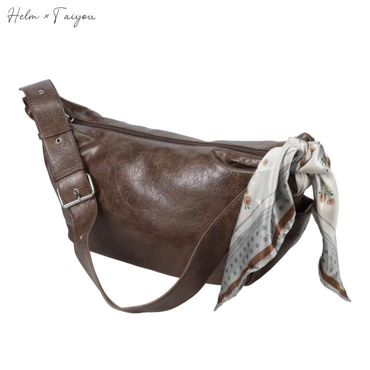 トレンドのスカーフ巻きクロワッサンショルダーバッグです。
