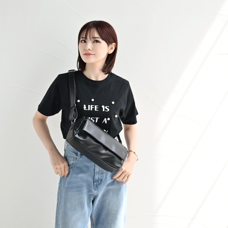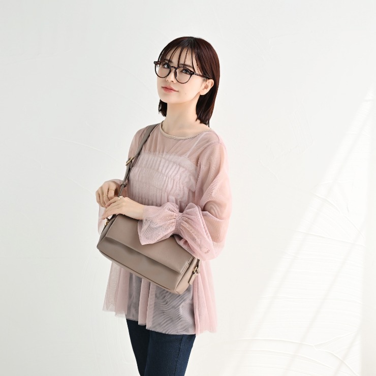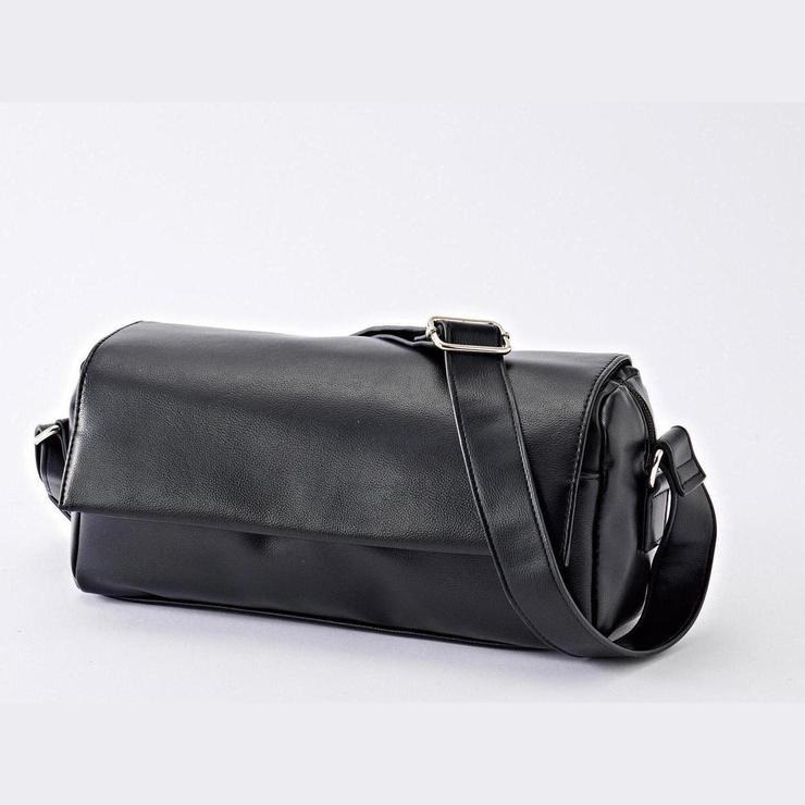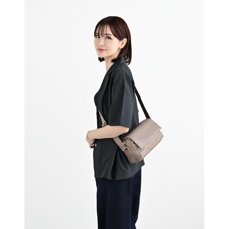 本体にはファスナーにカブセが付いているシンプル合皮ショルダー。