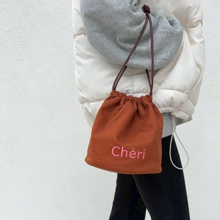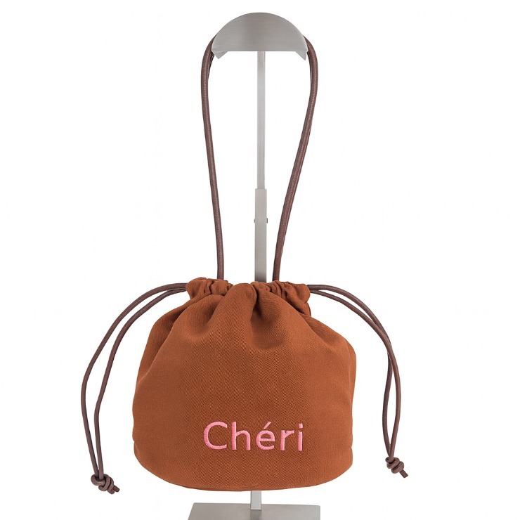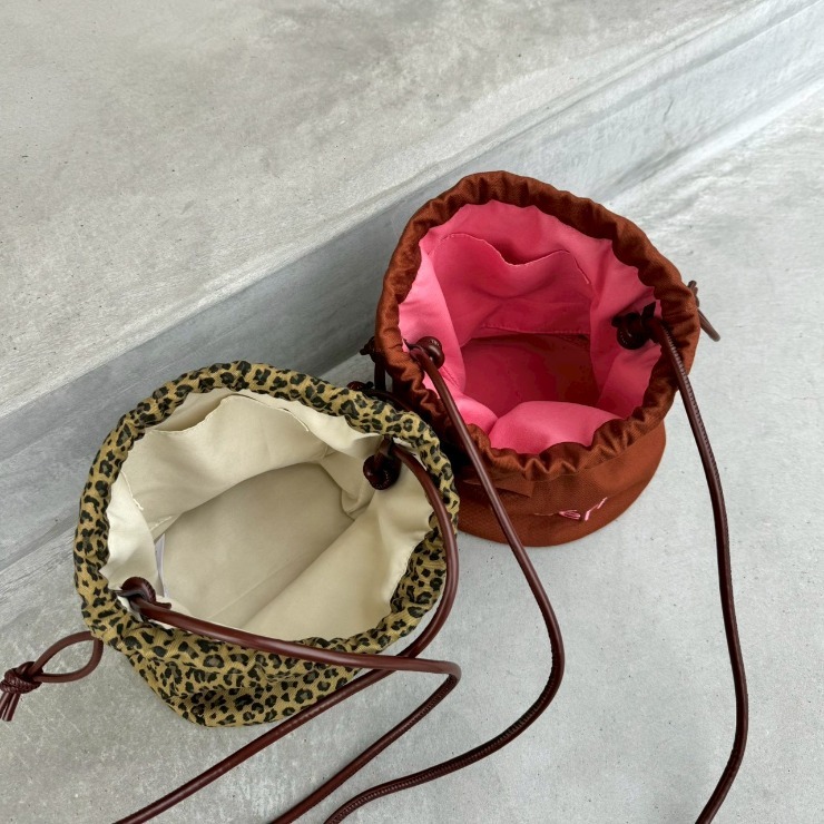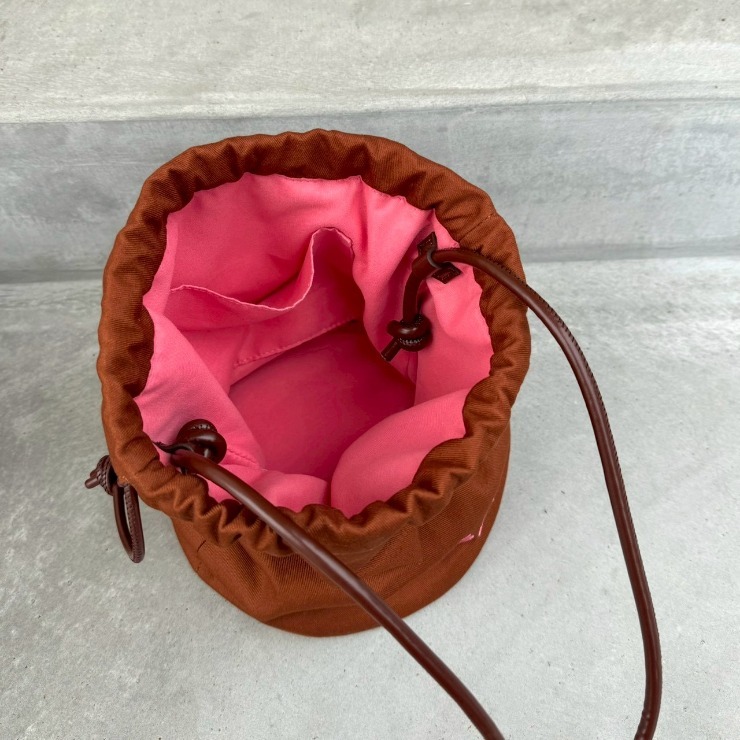 ころんとしたフォルムが愛らしい、大人かわいい巾着バッグ。