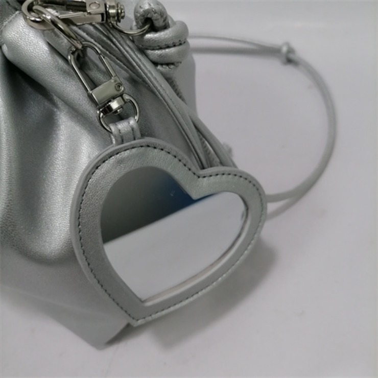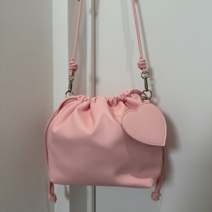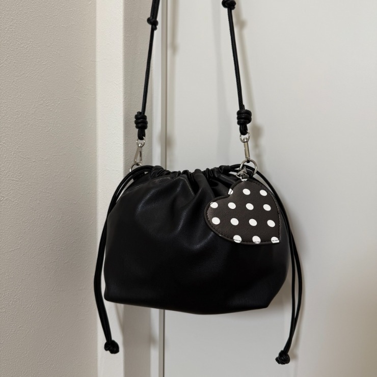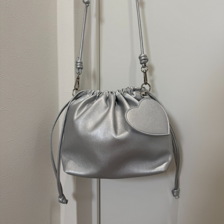 巾着ショルダーにハートミラーチャームがついてとってもおしゃれなアイテムです!