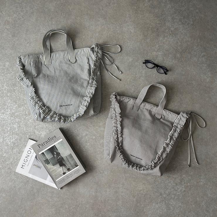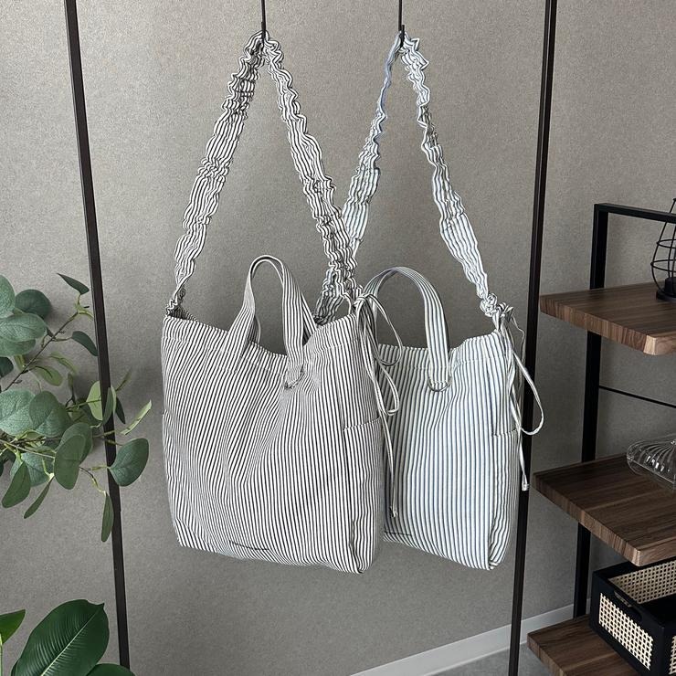 爽やかなストライプ柄が目を惹く2WAYショルダーバッグ。