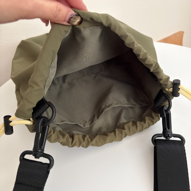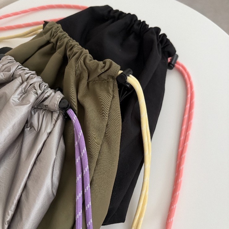 絞り紐が配色でポイントになるデザインがくせになるアイテムです。