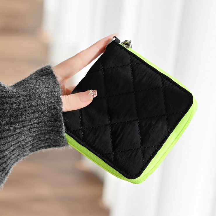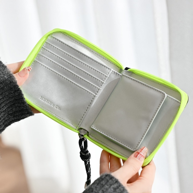ブラックとシルバーと蛍光緑の色合いがポップでかわいいお財布ショルダーです。