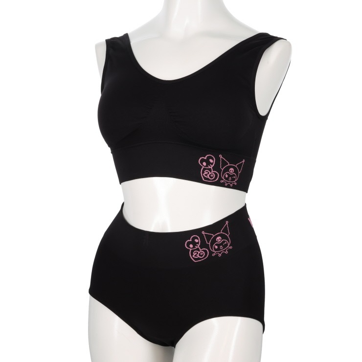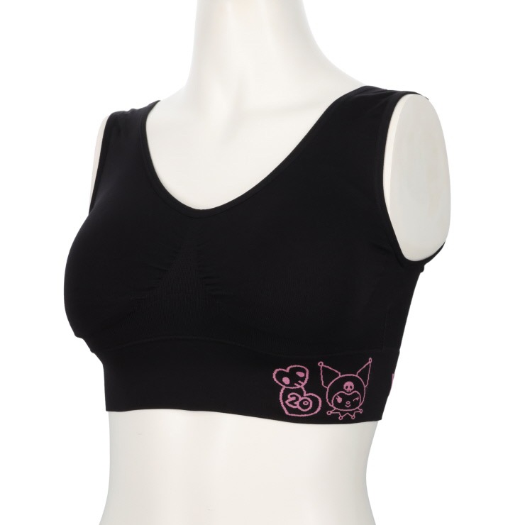 サンリオキャラクターズのコラボのハーフトップブラが新登場。伸縮性のある素材なので、様々な体型にフィットしやすく、通気性の良い穴あきパットでムレにくい。脇高設計&特殊編みを採用し、着用による気になる両脇を補正して美しいバストライン。ベルト部分のロゴのキャラクターが可愛い!