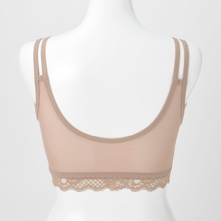 『tal.by yumi.』から夜も昼も使えるナイトブラが登場!繊細なレースを前面に使用して可愛らしく華やかなデザイン。日中でも着けやすいキレイ見えデザインのため、24時間使用できます。睡眠時に胸の上流れ・横流れを防止するパネル付き。脇の汗取りパッドで気になる脇汗をキャッチして快適な着心地。後面にパワーネット生地を使用しているので、補正力・通気性もあり汗をかいてもべたつきにくい。ホックがないので寝ているときもアタリが気にならず快適に過ごせます。取り外しできる胸パッドは下厚になっているので胸の形もきれいに見せてくれます。