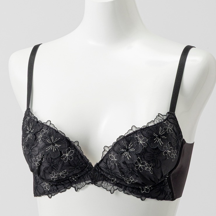 カップ裏にはシルク混の生地を使用し、肌あたりは優しくなめらかでつややか