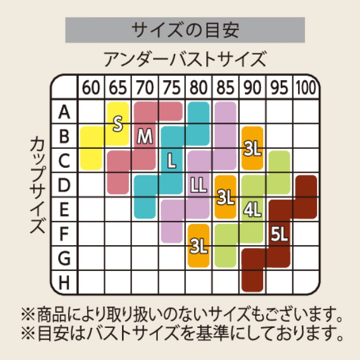 LL バスト:93~101cm アンダーバスト:75~85cm サイズガイド - 品番