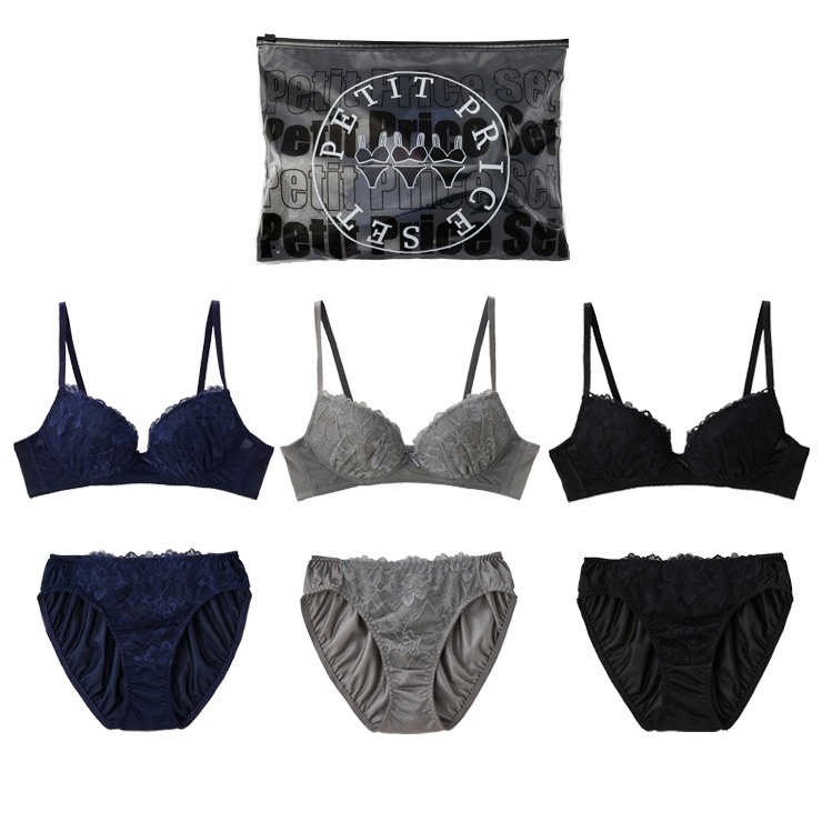 ノンワイヤーブラジャーとショーツのセットが3組入ったお得なハッピーバッグです。
