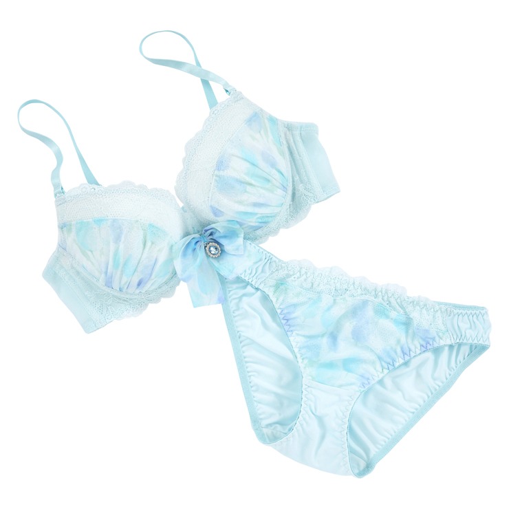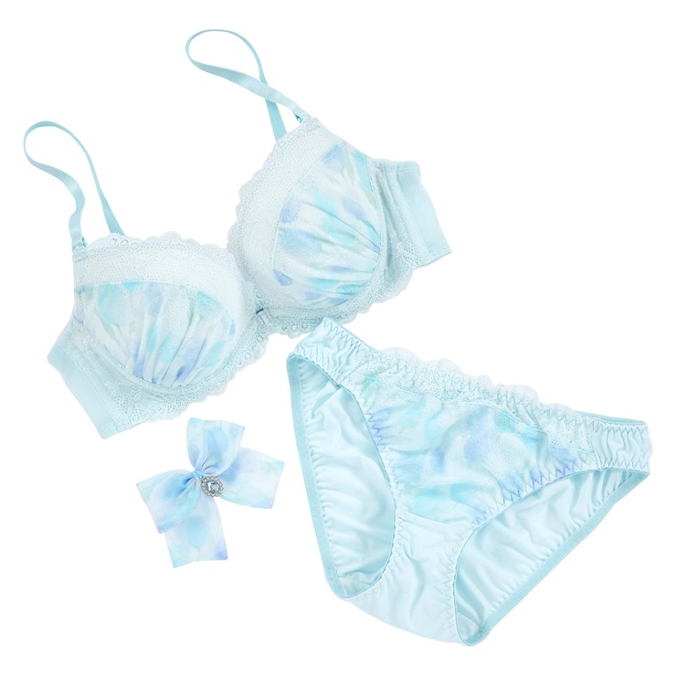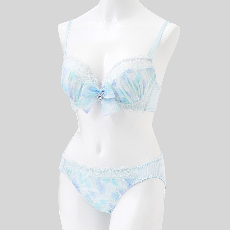 レディース ワイヤーブラジャー+ショーツセット リボンクリップ付き(B~Dカップ・推し活ブラ) ライトブルー 307 ライトブルー 307