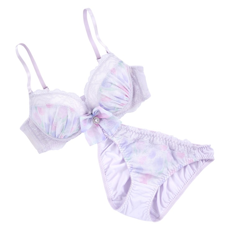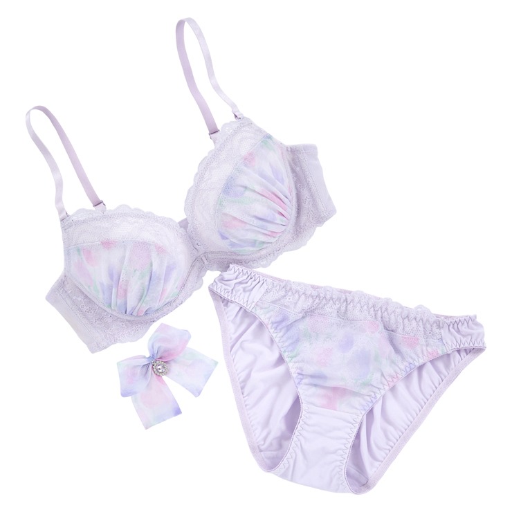 レディース ワイヤーブラジャー+ショーツセット リボンクリップ付き(B~Dカップ・推し活ブラ) ラベンダー 309 ラベンダー 309