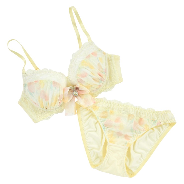 レディース ワイヤーブラジャー+ショーツセット リボンクリップ付き(B~Dカップ・推し活ブラ) イエロー 303 イエロー 303