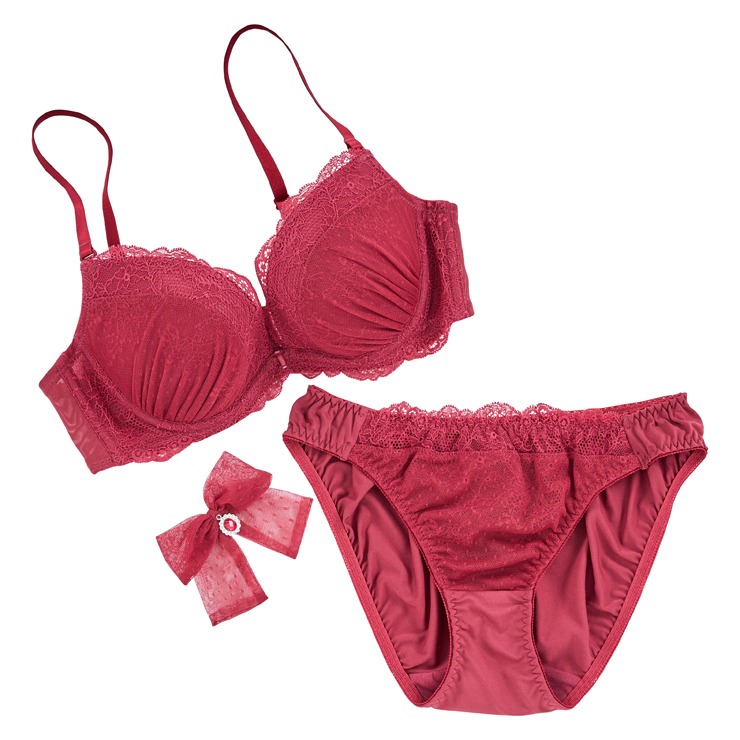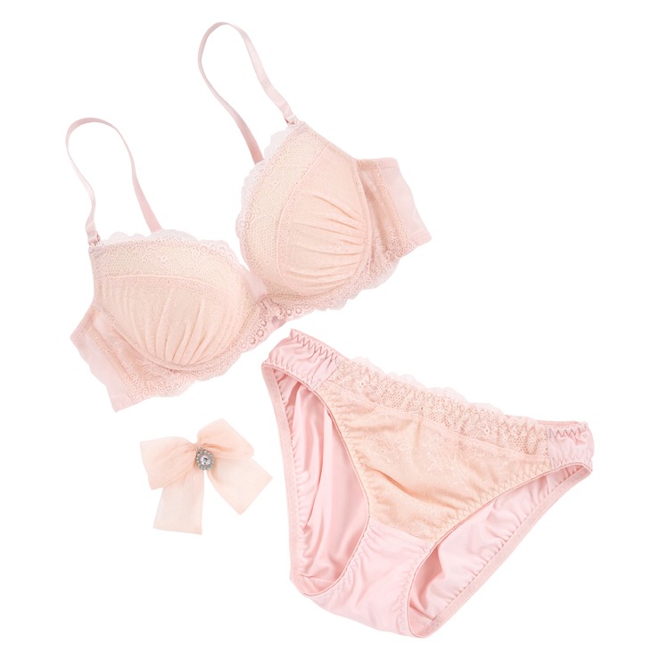 レディース ワイヤーブラジャー+ショーツセット リボンクリップ付き(B~Dカップ・推し活ブラ)