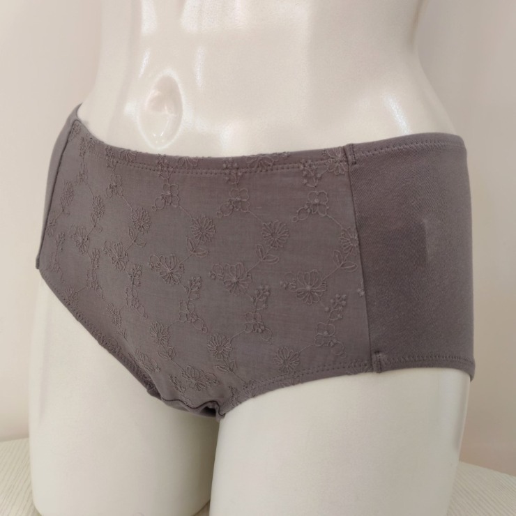 ヒップを包み込む安心感のあるボックスタイプ 線描き調の花刺繍がナチュラルな印象♪