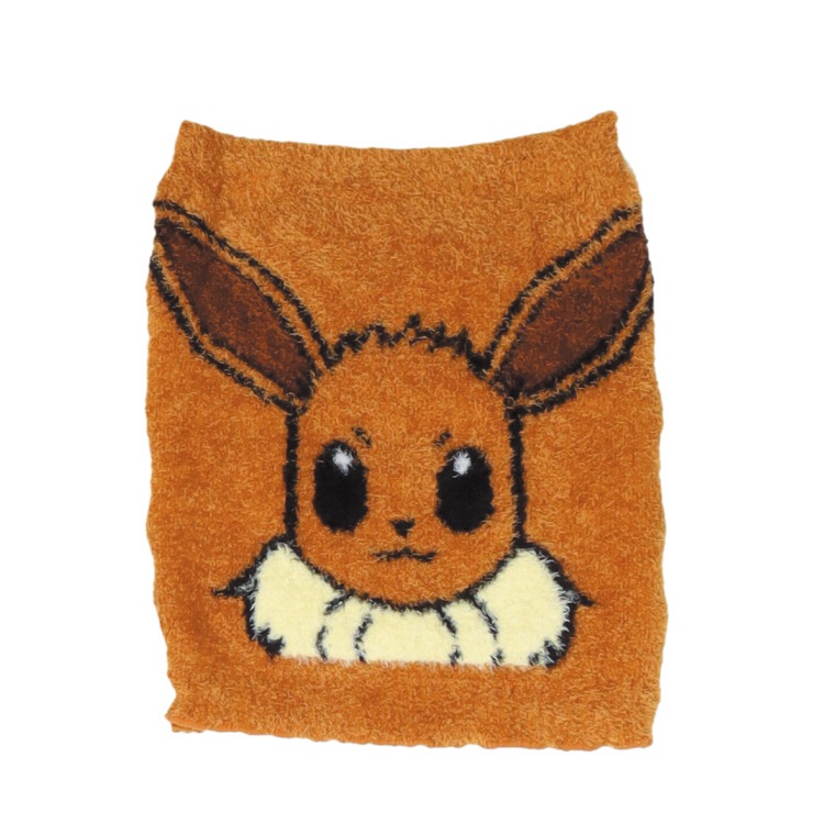 ふわふわ・モコモコで、表面は「イーブイ」のフェイス、裏面はロゴとモンスターボールのデザインとなります。