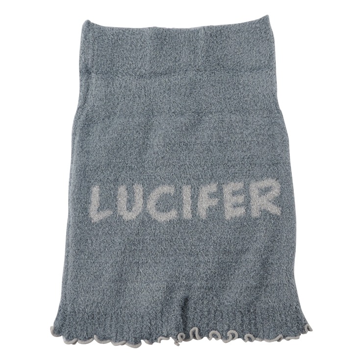 ふわふわ・モコモコで、表面は、いじわるな表情のルシファー、裏面はロゴが入ったデザインとなります。