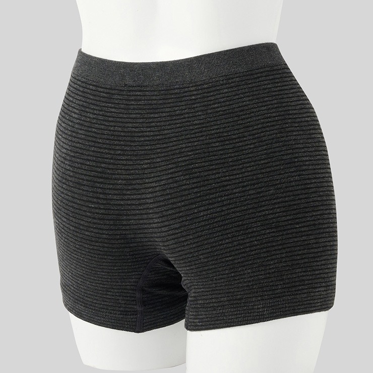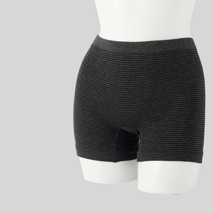 ムレにくく、においを抑える機能加工もプラス、裏マチ付きで1枚ばきもOK