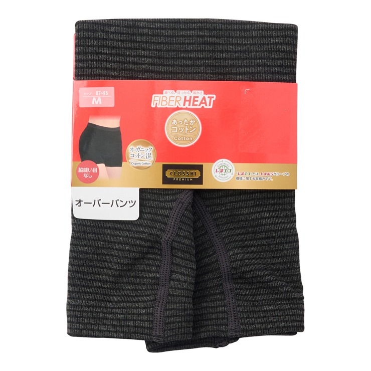 レディース 成型オーバーパンツ ボーダー(FIBER HEAT あったかコットン)