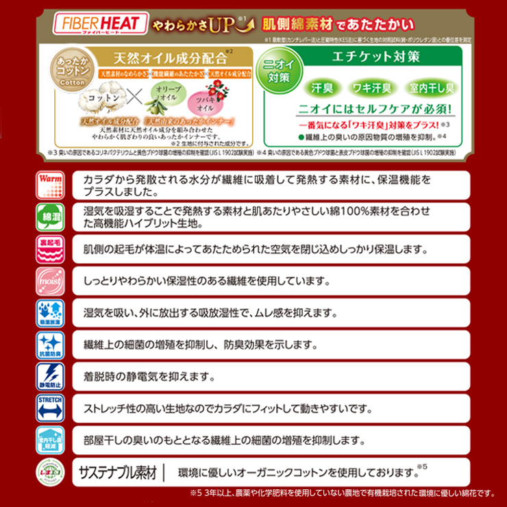 カラダから発散される水分が繊維に吸着して発熱する資材に、保温機能をプラスしました。