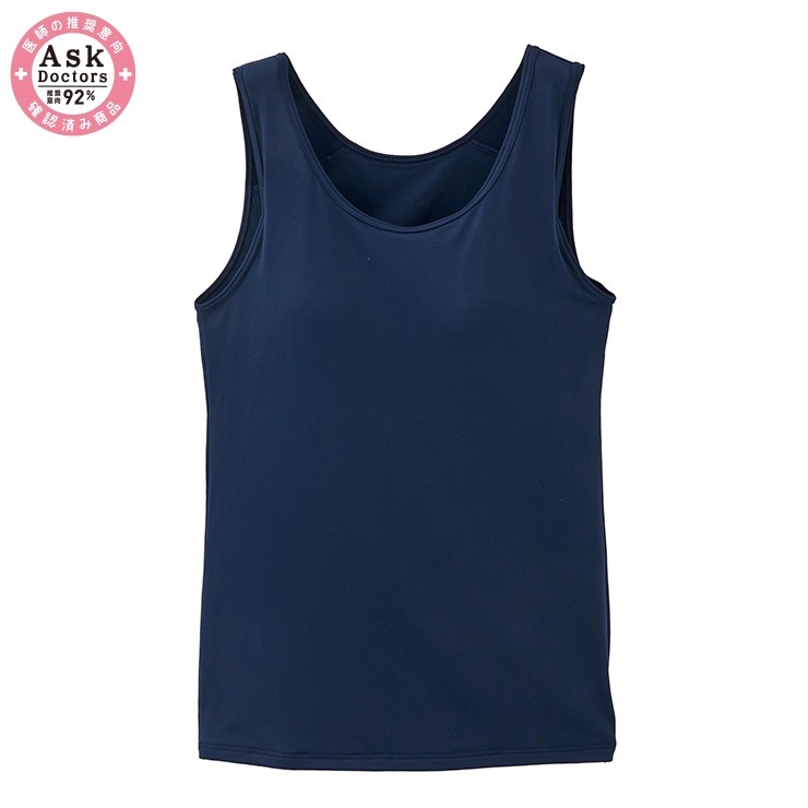医師100人に調査した結果92%の医師がプラチナ加工を推奨(AskDoctors調べ)。繊維上の細菌の増殖を抑制し、防臭効果のある抗菌防臭加工。裏起毛カップ付タンクトップです。