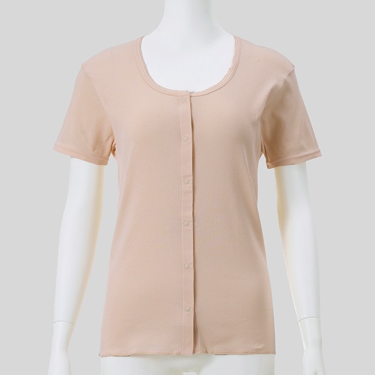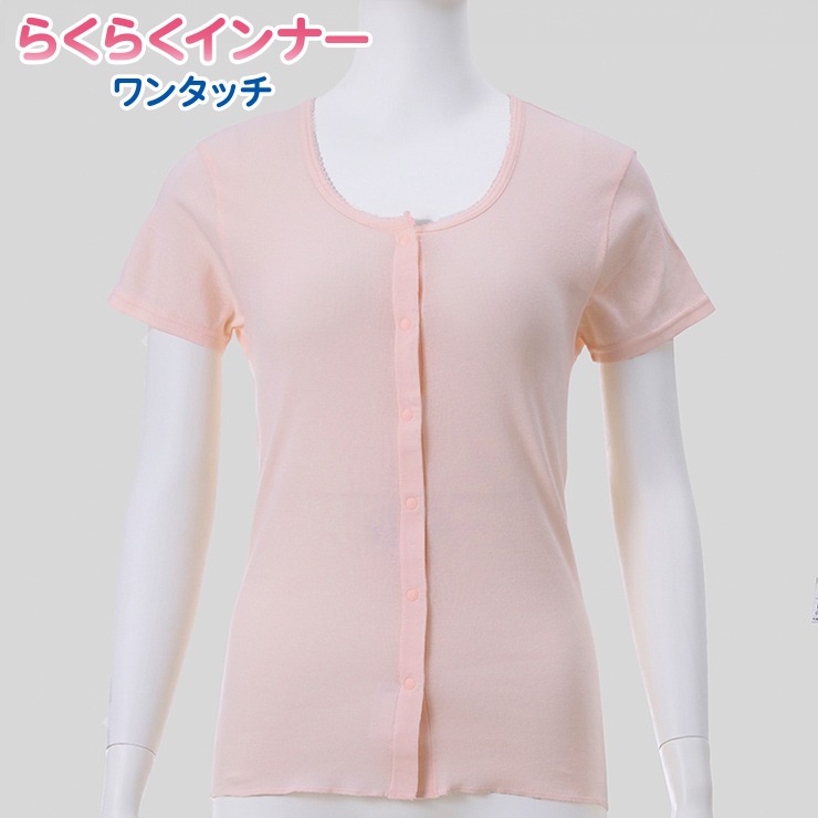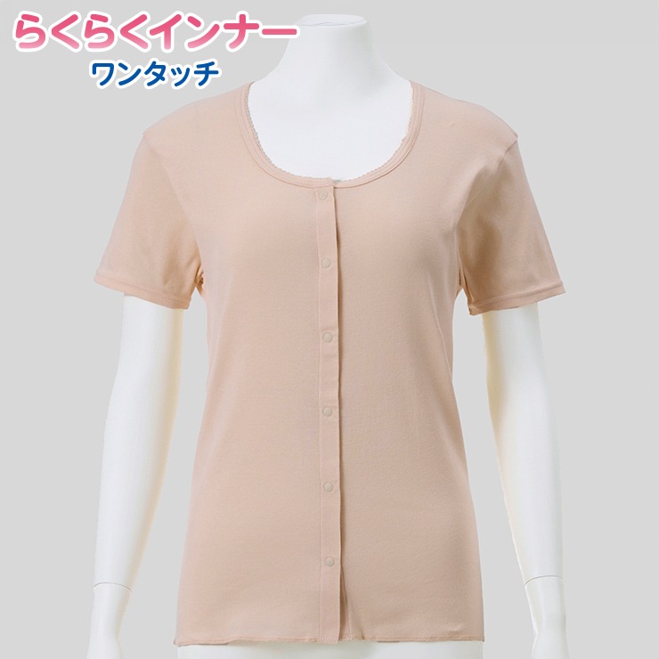 しまサポ直トク便|レディース 前開き3分袖インナー(スナップボタン)