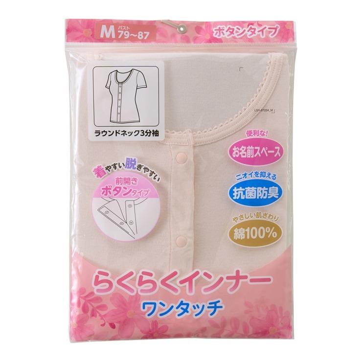 レディース らくらくインナー(スナップボタン・ラウンドネック3分袖)