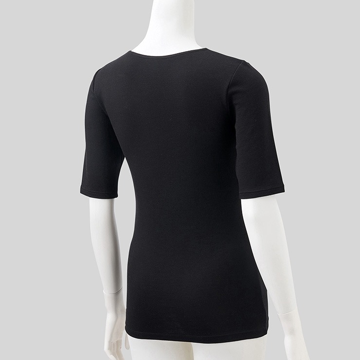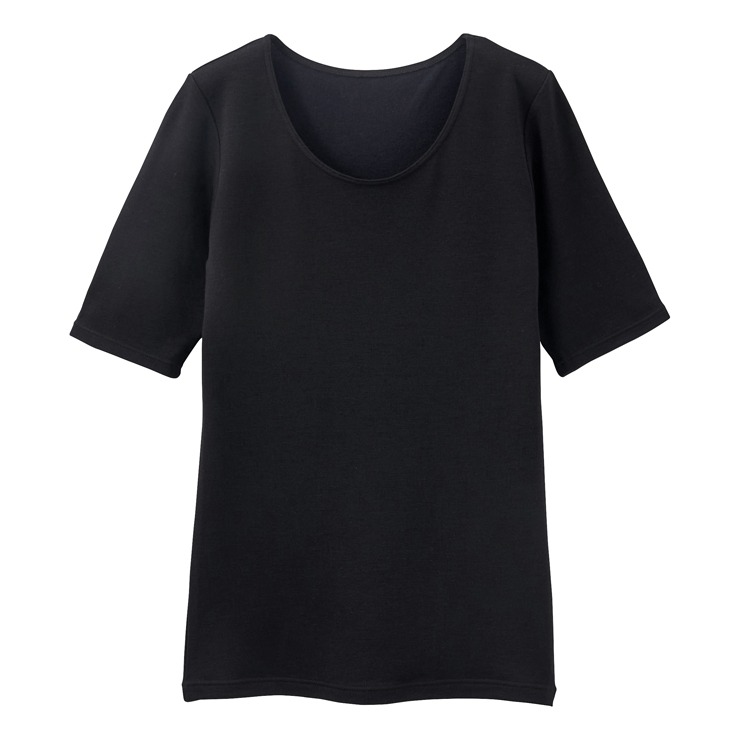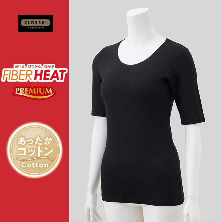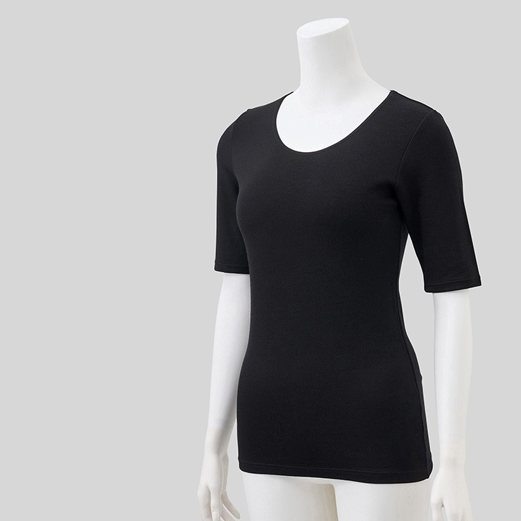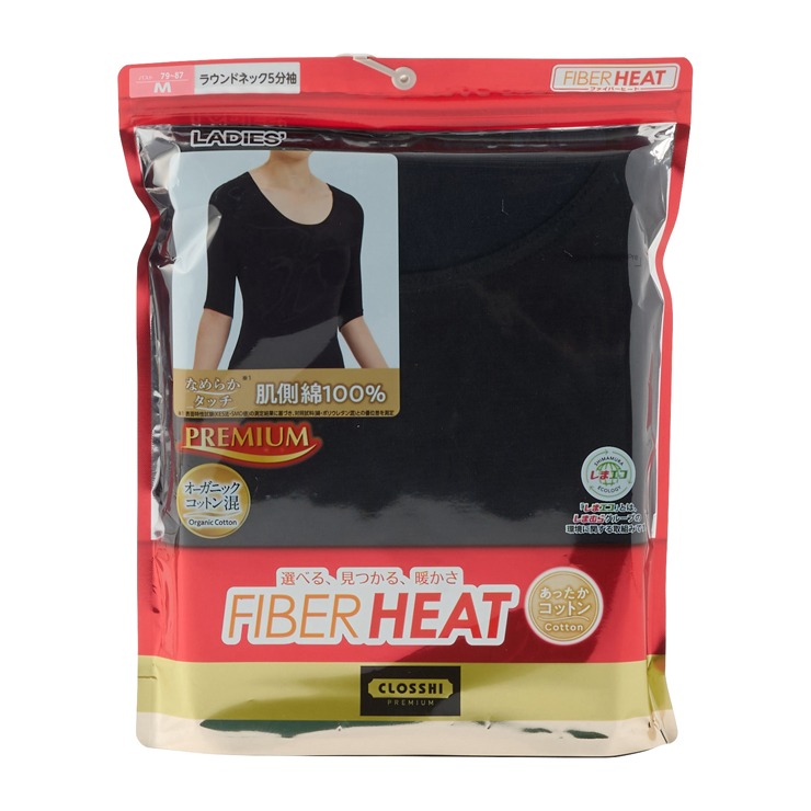 レディース ラウンドネック5分袖(FIBER HEAT あったかコットン)