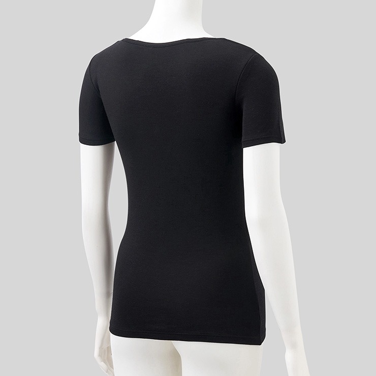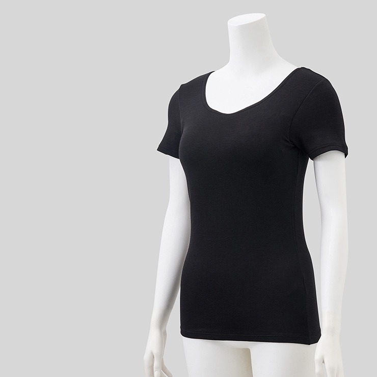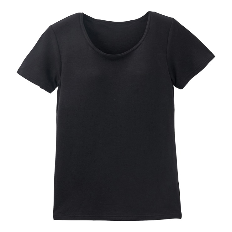 レディース カップ付きラウンドネック3分袖 しっかり(FIBER HEAT あったかコットン) ブラック 213 ブラック 213