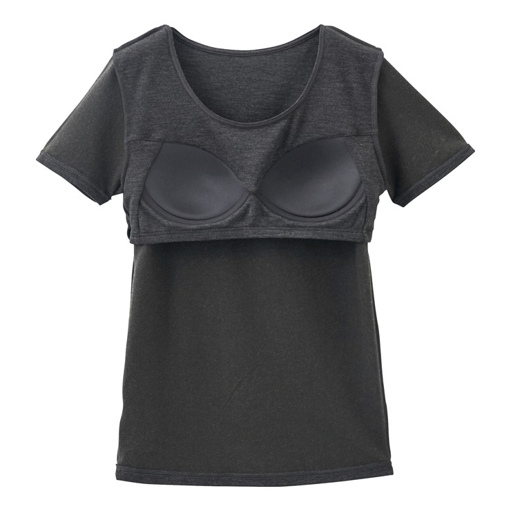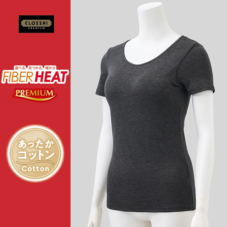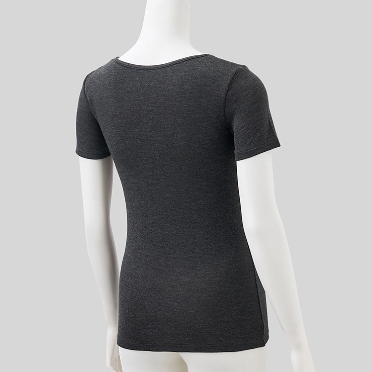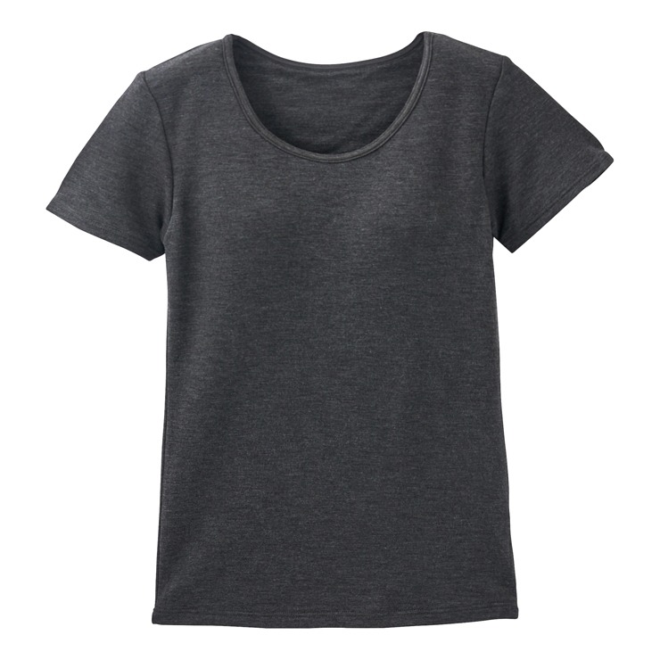 レディース カップ付きラウンドネック3分袖 しっかり(FIBER HEAT あったかコットン) ダークグレー 112 ダークグレー 112