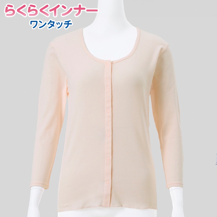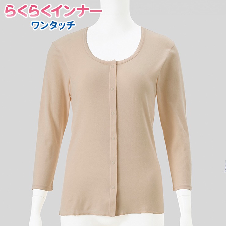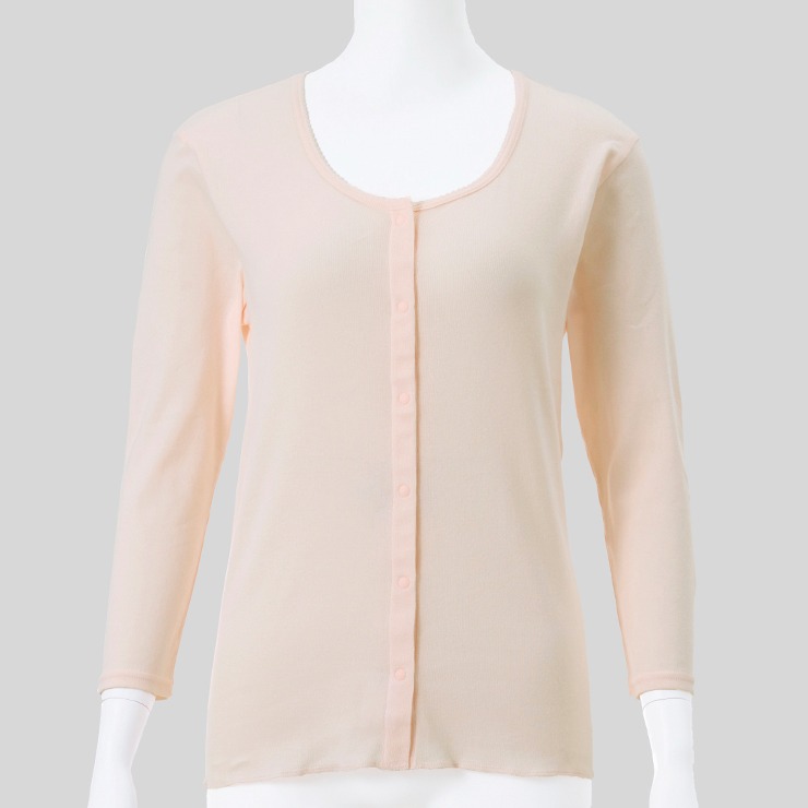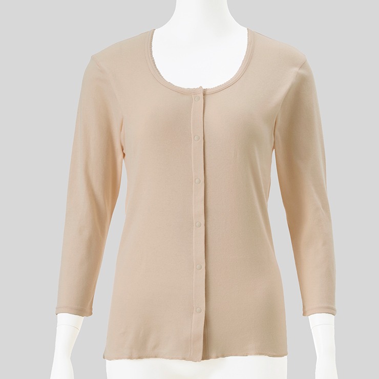 しまサポ直トク便|レディース 前開き8分袖インナー(スナップボタン)