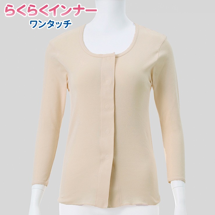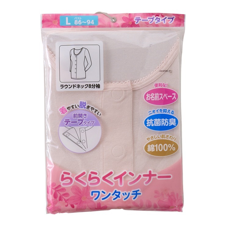 レディース らくらくインナー(ワンタッチテープ・ラウンドネック8分袖)