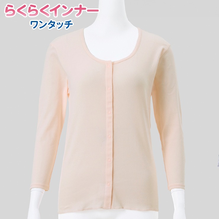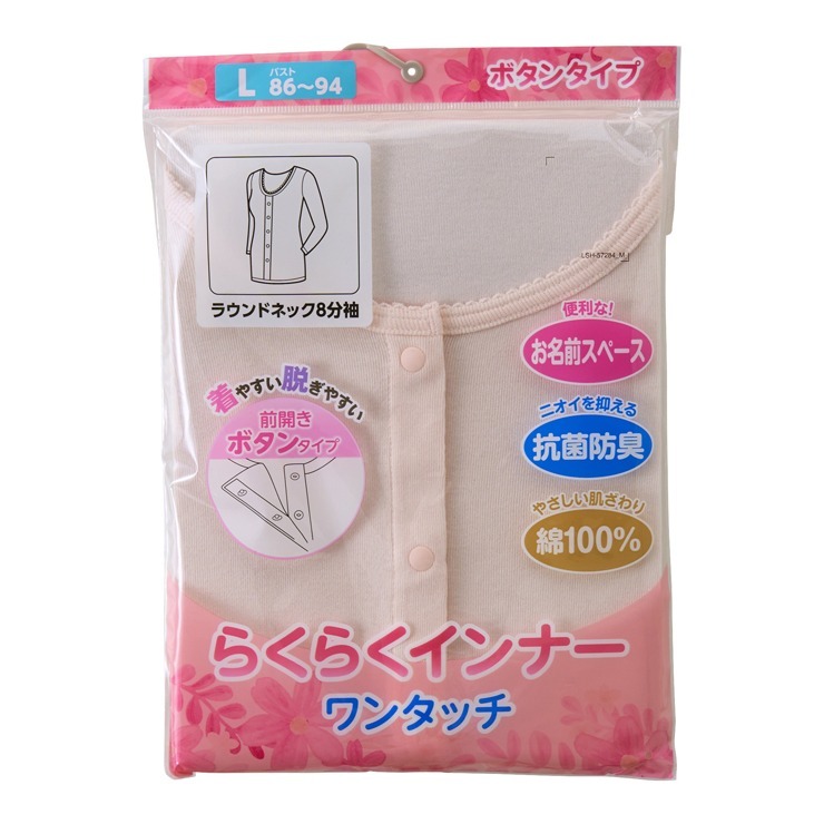 レディース らくらくインナー(スナップボタン・ラウンドネック8分袖)