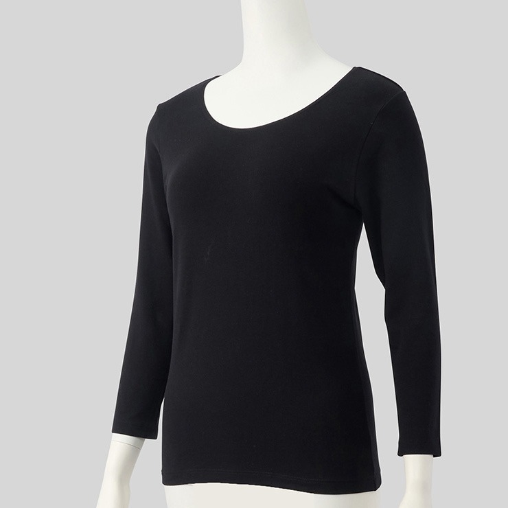 しまサポ直トク便|レディース ラウンドネック8分袖インナー(3L~5L・FIBER HEAT COTTON)