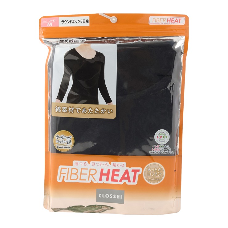 レディース ラウンドネック8分袖インナー(3L~5L・FIBER HEAT COTTON)