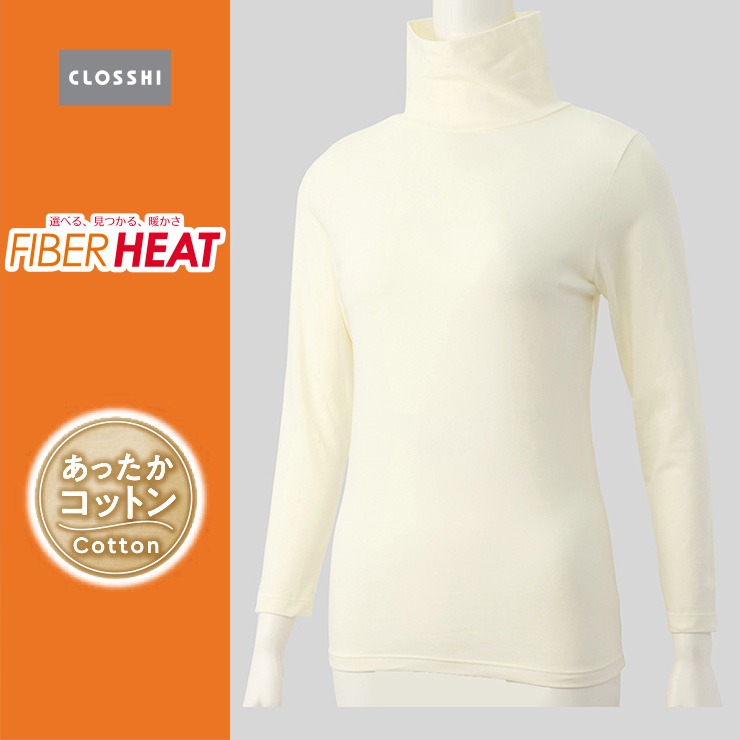 レディース タートルネック長袖インナー(FIBER HEAT COTTON)