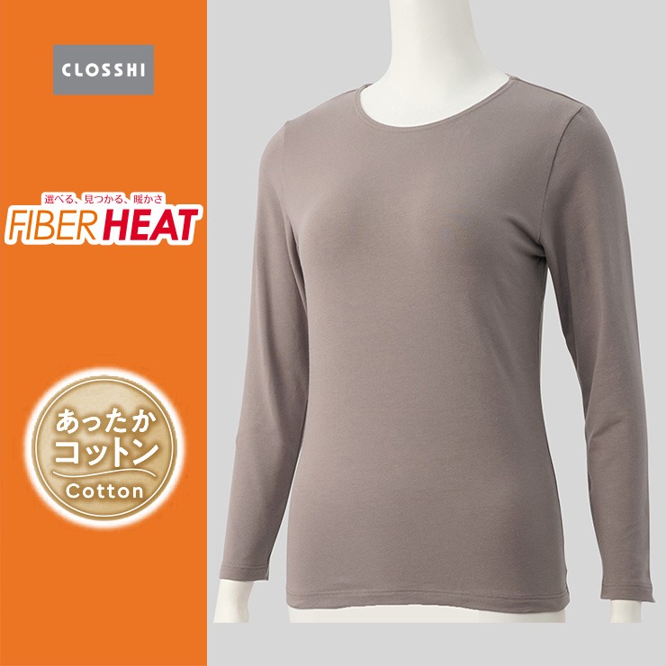 しまサポ直トク便|レディース クルーネック長袖インナー(FIBER HEAT COTTON)