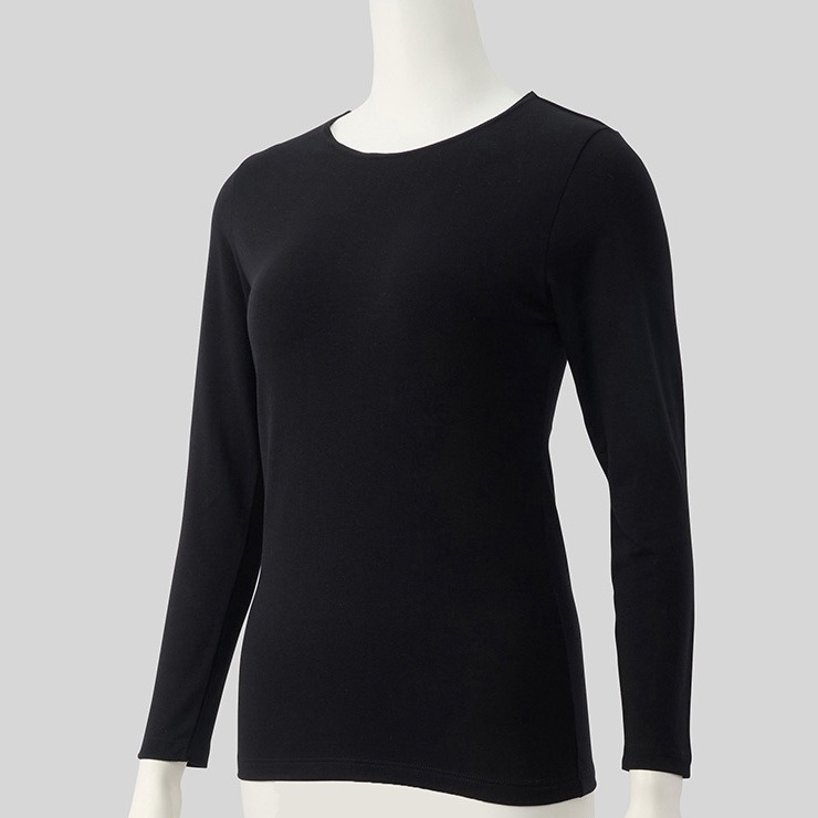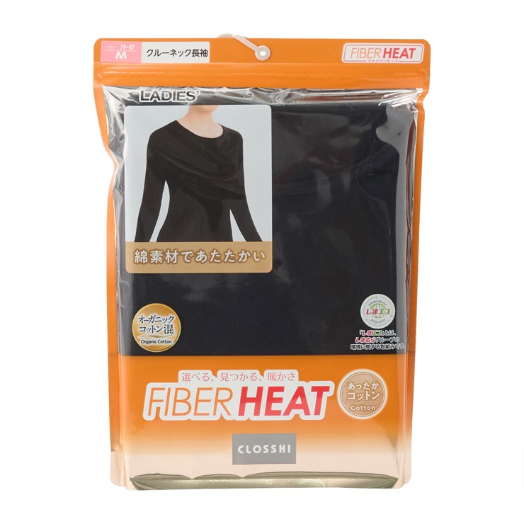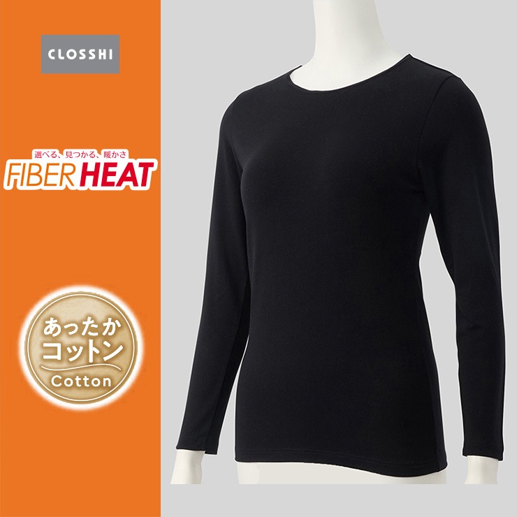 しまサポ直トク便|レディース クルーネック長袖インナー(3L~6L・FIBER HEAT COTTON)