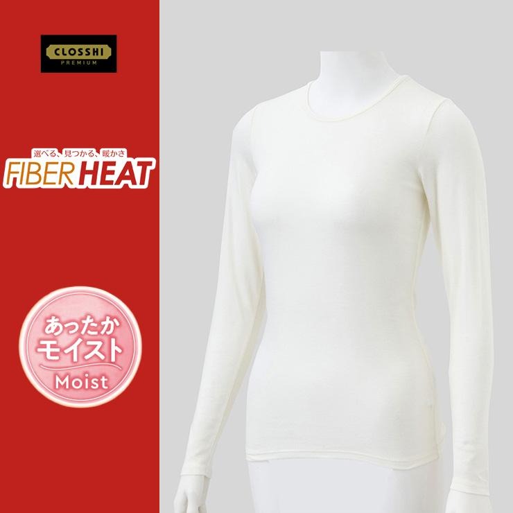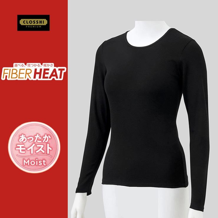 レディース クルーネック長袖(FIBER HEATプレミアム あったかモイスト)